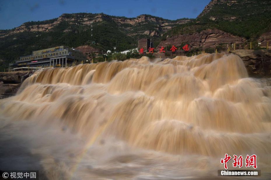 ​5月31日,山西临汾奔腾咆哮的黄河壶口瀑布吸引游客。近日,受上游地区降雨量增多影响,黄河干流晋陕峡谷水量大增,每秒流量达到1100立方,是常年同期的三倍,壶口瀑布出现五月份罕见的瀑布群景观,吸引了众多游客。 吕桂明 摄 图片来源:视觉中国