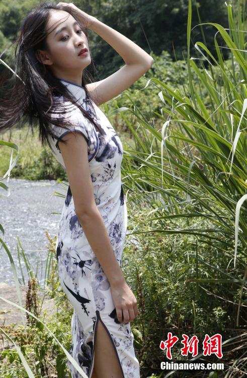 参赛佳丽在中南百草原身穿泳装展示风采。 中新社记者 钱兴强 摄