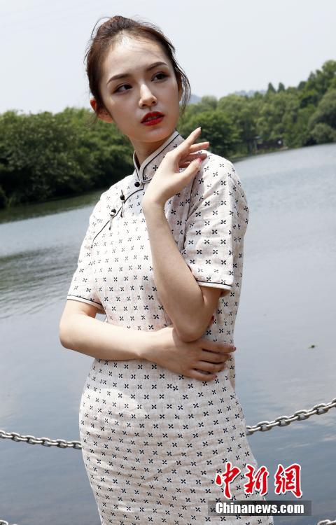 参赛佳丽在中南百草原身穿泳装展示风采。 中新社记者 钱兴强 摄
