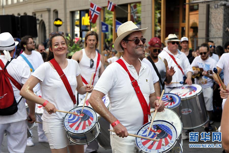 6月2日,在挪威首都奥斯陆,表演者参加狂欢节游行。当日,奥斯陆举行一年一度的狂欢节游行。 新华社记者梁有昶摄