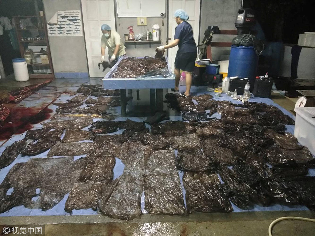 短肢领航鲸搁浅泰国潜湾后死亡 胃里惊现8公斤塑胶袋