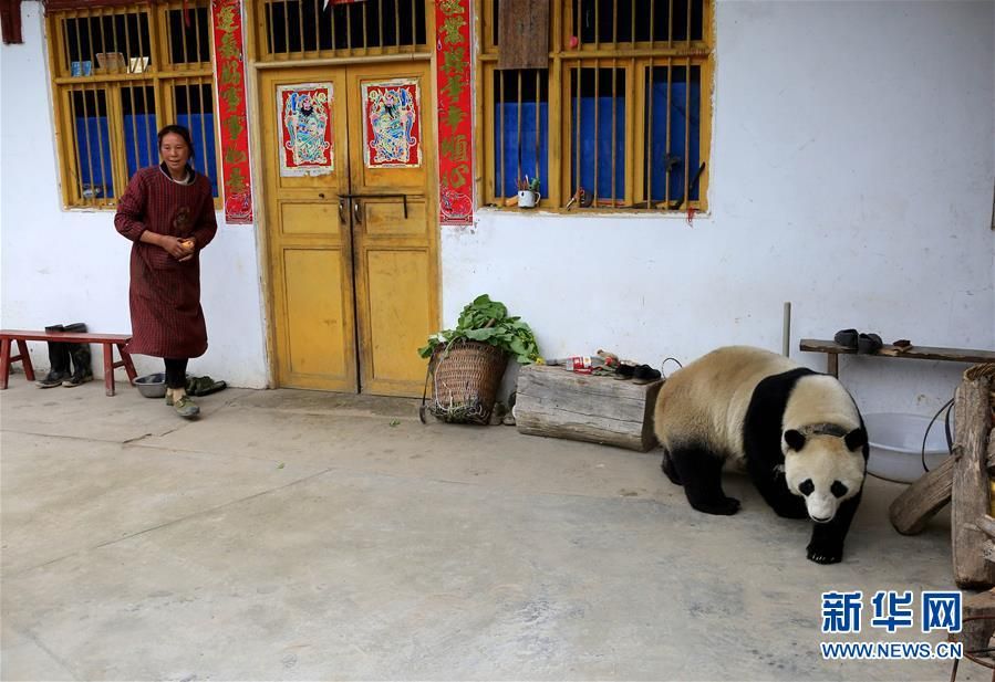 5月31日,一只大熊猫来到汶川县绵虒镇金波村。当日9时许,一只大熊猫突然闯入四川省汶川县绵虒镇草坡片区金波村,正在修路的村民发现后,立即停工。大熊猫一点也不怕生,还悠闲地跑到村民家中玩耍。随后,记者从中国大熊猫保护研究中心获悉,这是该中心用于野外引种的圈养大熊猫。新华社发(伍排勇 摄)