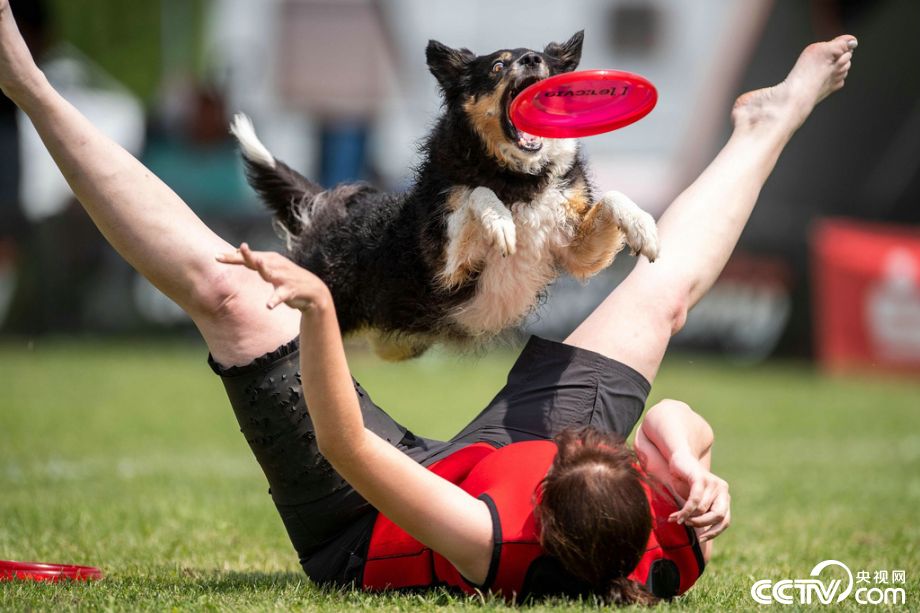 德国举行“汪星人”飞盘大赛 纪录萌宠拼搏瞬间