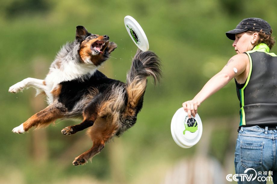 德国举行“汪星人”飞盘大赛 纪录萌宠拼搏瞬间