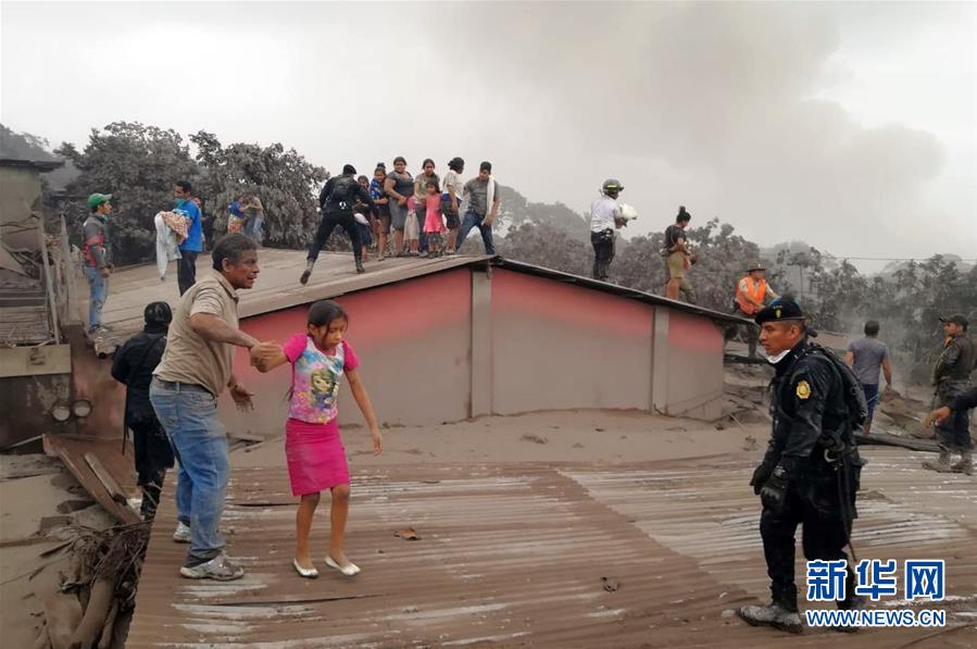 6月3日,在危地马拉奇马尔特南戈省的阿卡特南戈,救援人员协助当地居民疏散。位于危地马拉首都危地马拉城西南约40公里的富埃戈火山3日猛烈喷发,已造成至少7人遇难。新华社发
