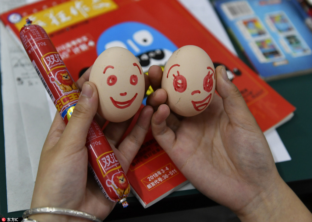 6月4日,南昌市的许多高中,高三学生都迎来了高中生活的“最后一课”。南昌市新建二中的“最后一课”上, 老师给学生发两个鸡蛋一根火腿肠,寓意满分。