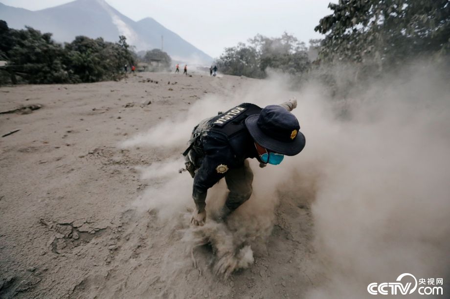危地马拉火山喷发 地表火山灰堆积如暴雪过境