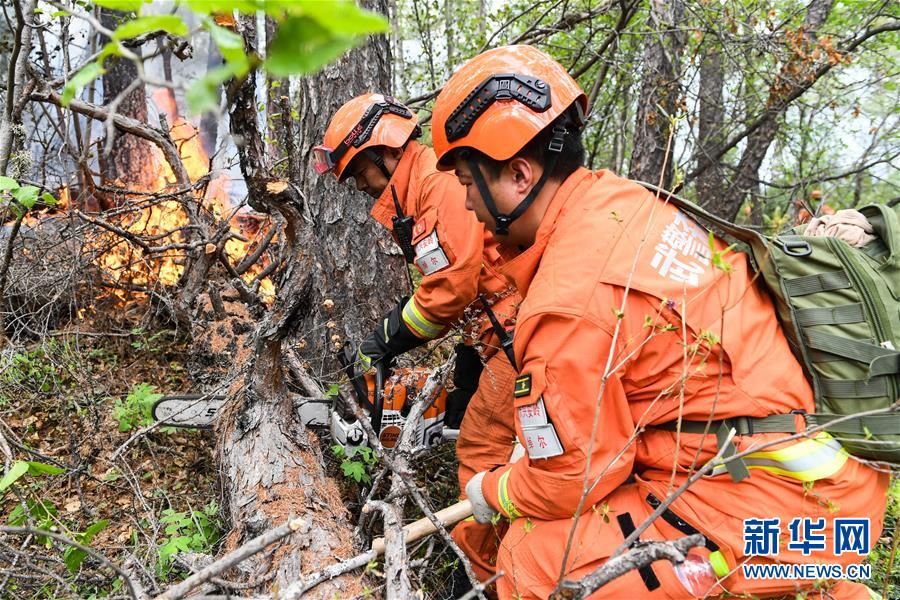 6月4日,武警森林部队官兵在汗马国家级自然保护区锯断燃烧的树木。 新华社记者 刘磊 摄