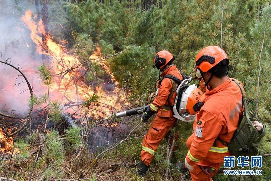 6月4日,武警森林部队官兵在汗马国家级自然保护区进行扑火。 新华社记者 刘磊 摄