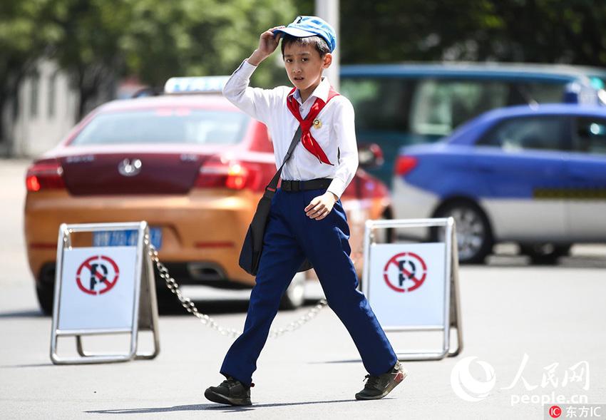 当地时间2018年5月31日,平壤街头戴红领巾的小男孩。(图为东方IC版权作品 请勿转载)