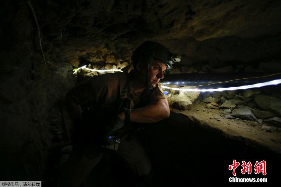 当地时间2018年6月4日,美国与墨西哥边境下的一条非法走私隧道,这条隧道现在被用于训练联邦官员。
