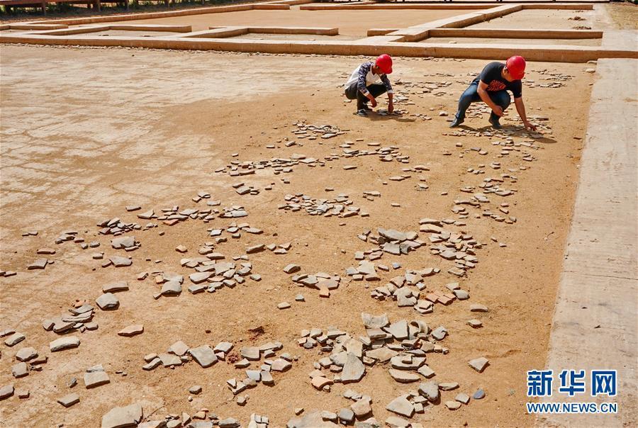 6月4日,工作人员在北戴河区秦行宫遗址摆放整理发掘出土的瓦片。新华社记者 杨世尧 摄 图片来源:新华网