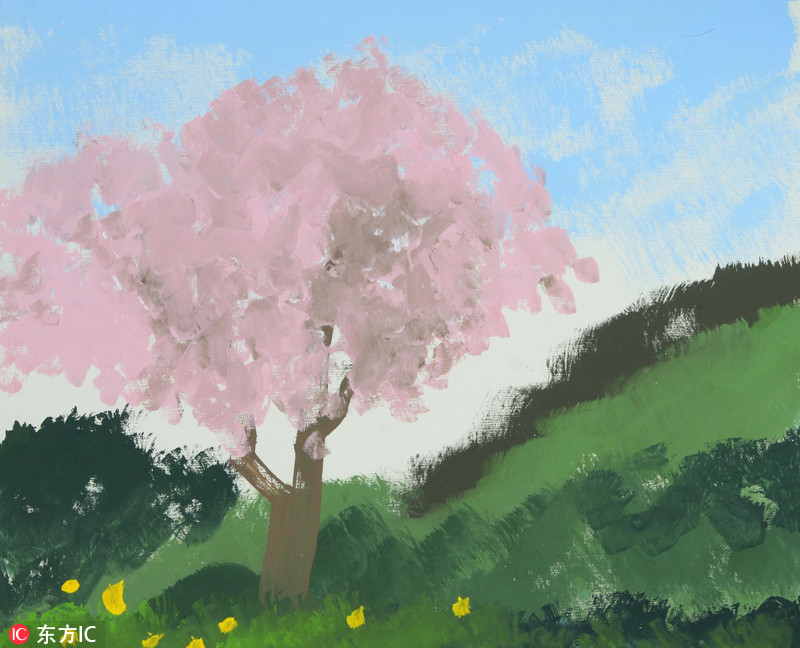 Yumeka今年10岁,它在1岁大的时候开始捉笔画画,2岁的时候,就已经能在游客面前从容表演,用长鼻捉着画笔画樱花了。