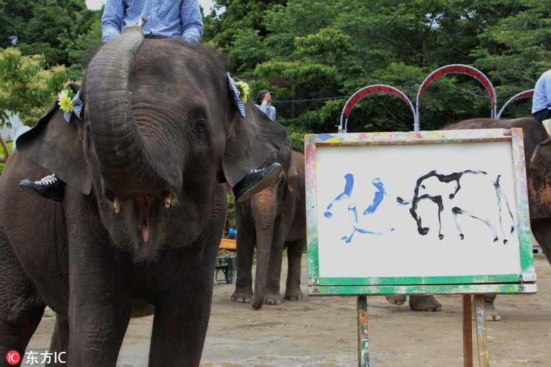 日本大象绘画天赋惊人成大明星 靠卖画给娃儿赚足奶粉钱
