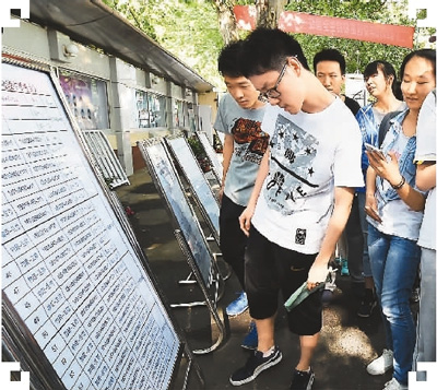 图为考生在江苏南京金陵中学考点查看考场安排。