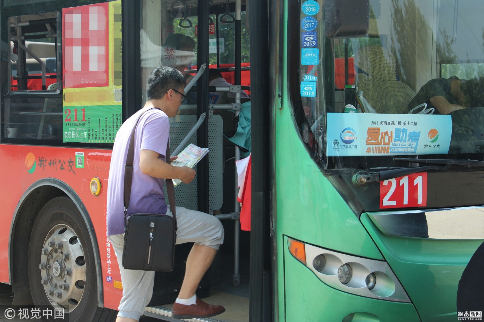 考生家长"占领"211、985公交 挂霸气横幅