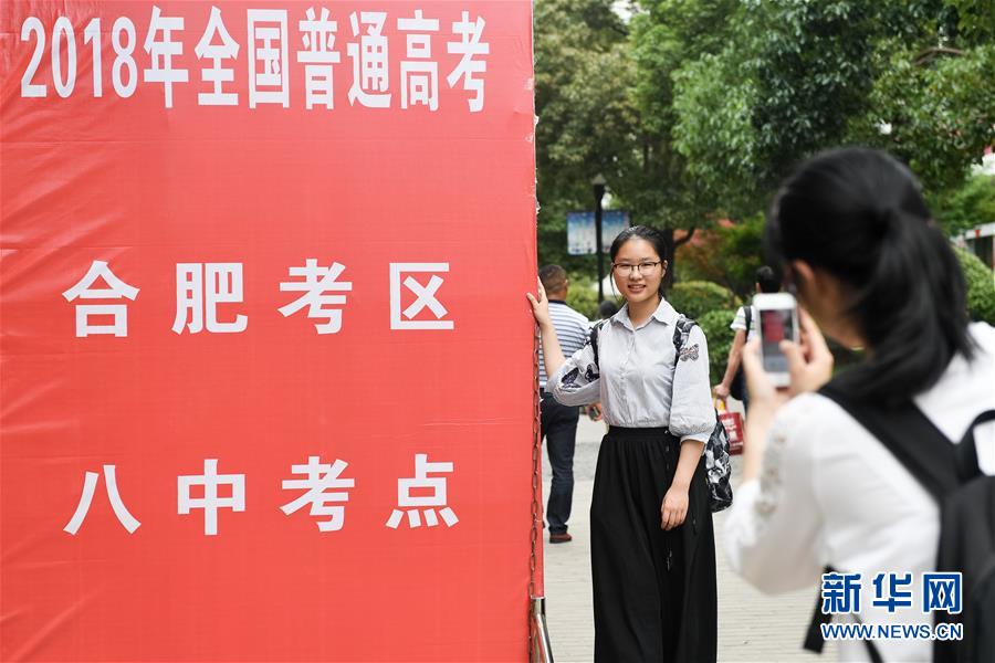6月8日,在安徽合肥市第八中学考点,考生在最后一门考试结束后留影。当日,全国部分地区2018年高考结束。 新华社记者 张端 摄