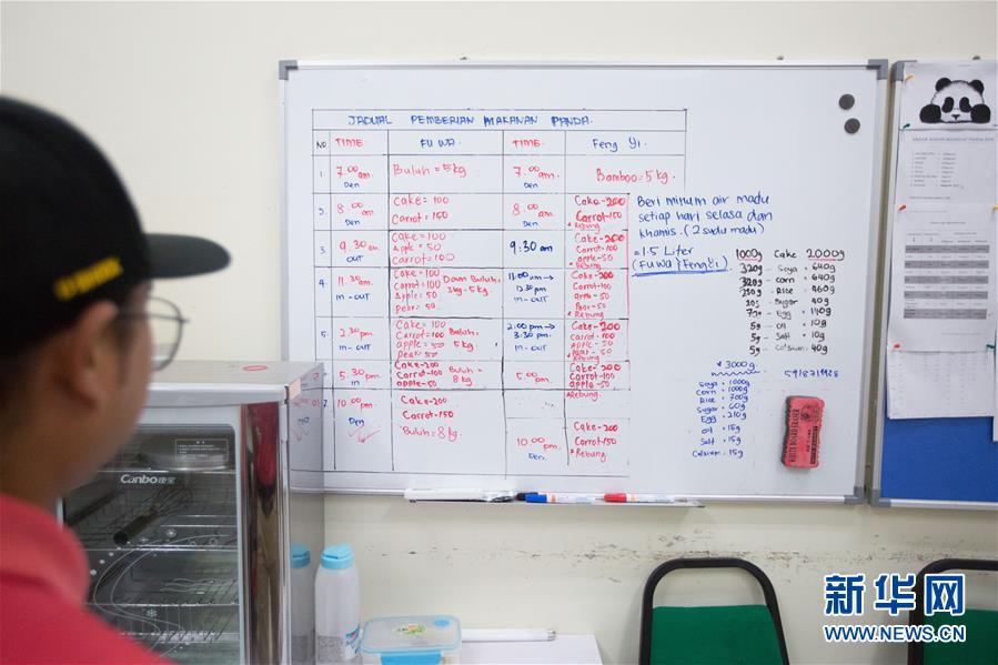 6月7日,在马来西亚吉隆坡附近的马来西亚国家动物园,阿克迈勒查看大熊猫的食谱。新华社记者朱炜摄