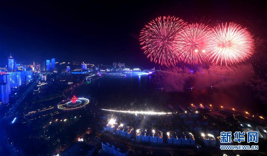 6月9日至10日,上海合作组织青岛峰会在山东青岛召开。这是9日晚在青岛举行的《有朋自远方来》灯光焰火艺术表演。 新华社记者刘军喜摄
