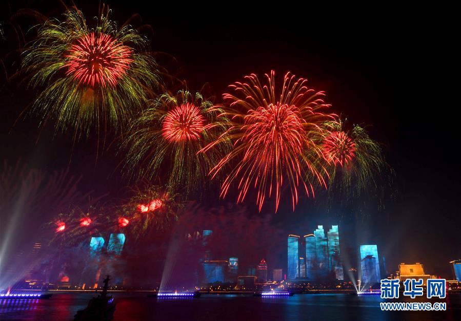 6月9日至10日,上海合作组织青岛峰会在山东青岛召开。这是9日晚在青岛举行的《有朋自远方来》灯光焰火艺术表演。 新华社记者朱峥摄