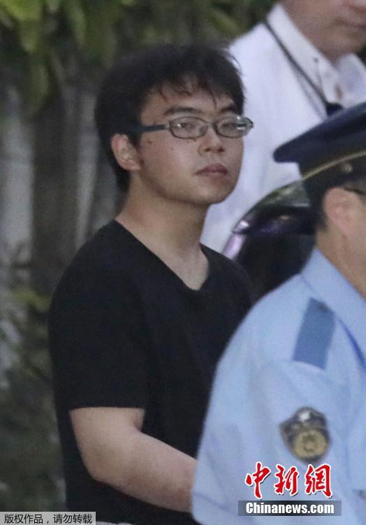 经警方初步审讯,该犯罪嫌疑人交待其叫小岛一朗,22岁,家住爱知县冈崎市蓑川町,当时心烦意乱,觉得砍谁都可以。图为嫌犯小岛一朗被警方带走。