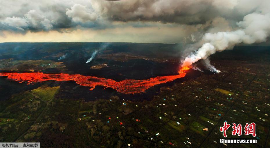 当地时间6月10日,美国夏威夷基拉韦厄火山持续喷发,熔岩从一道裂缝中汹涌流出,因地势不同形成“岩浆瀑布”蔚为壮观。
