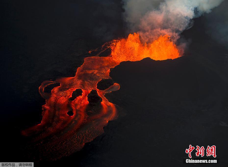 夏威夷火山持续喷发 "岩浆瀑布"蔚为壮观