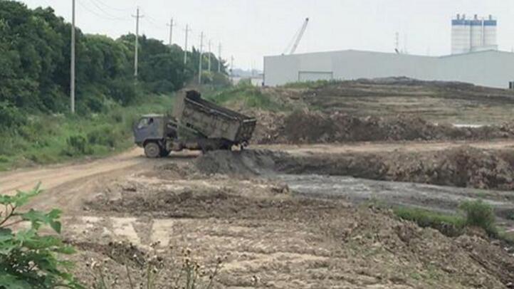 长江边违法倒万吨污泥,用塑料膜覆盖