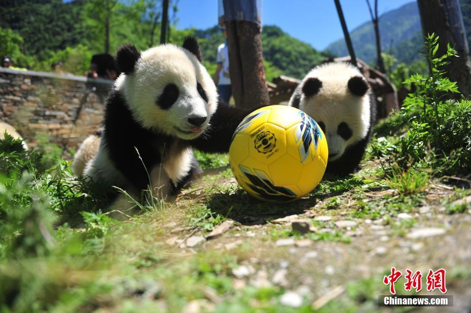 近日,四川阿坝州卧龙神树坪熊猫保护基地,中国大熊猫保护研究中心将在第21届世界杯足球赛期间,合ipanda熊猫频道举办“熊猫玩转世界杯”系列活动。8只2017级的熊猫宝宝将在6月14日-7月15日期间,通过 “熊猫足球赛”“熊猫的世界杯大餐”“熊猫知识竞猜”等6场与世界杯相关的熊猫特色活动。以生动趣味的活动,助威世界杯,走向全世界,传播大熊猫文化。中国大熊猫保护研究中心 供图 图片来源:视觉中国