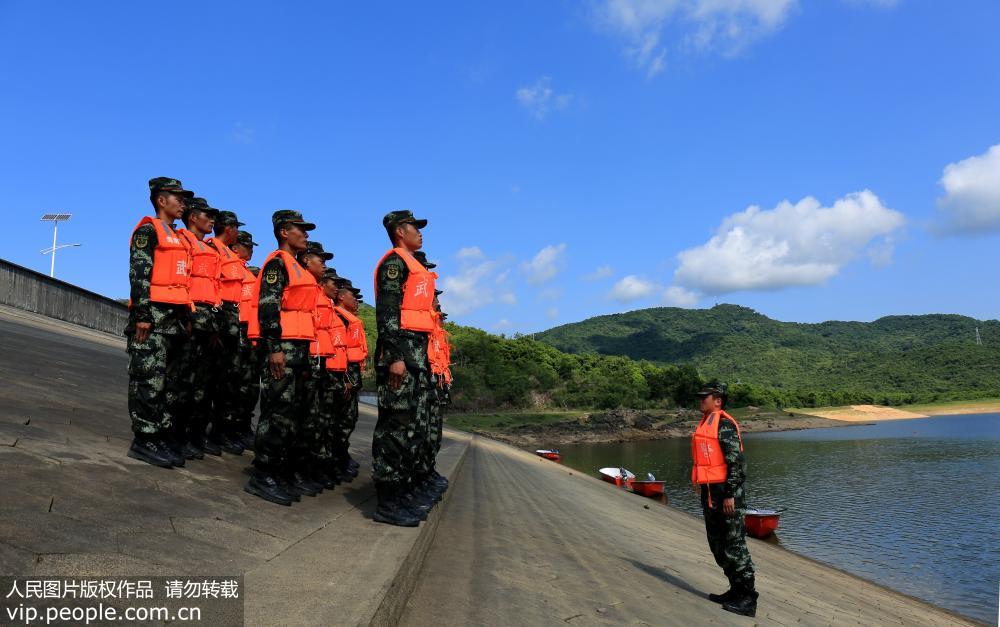 “各艇注意,保持安全距离,依次加速前进。”“01,我艇到达事发海域,现已成功解救2名被困群众!请指示。”2018年6月4日至11日,武警三亚支队在某陌生海域组织冲锋舟操作手集训。由于海南近期频繁强降水,可能导致洪涝灾害,武警三亚支队组织进行为期一周的冲锋舟操作手集训。这次集训立足于提升部队“防大汛、抗强台、抢大险、救大灾”抢险救灾实战能力,围绕抗洪抢险中可能出现的灾情设置教学内容,包括绕避障碍物、水上救生和抗洪抢险救援演练等10余个重难点科目。周奕/摄
