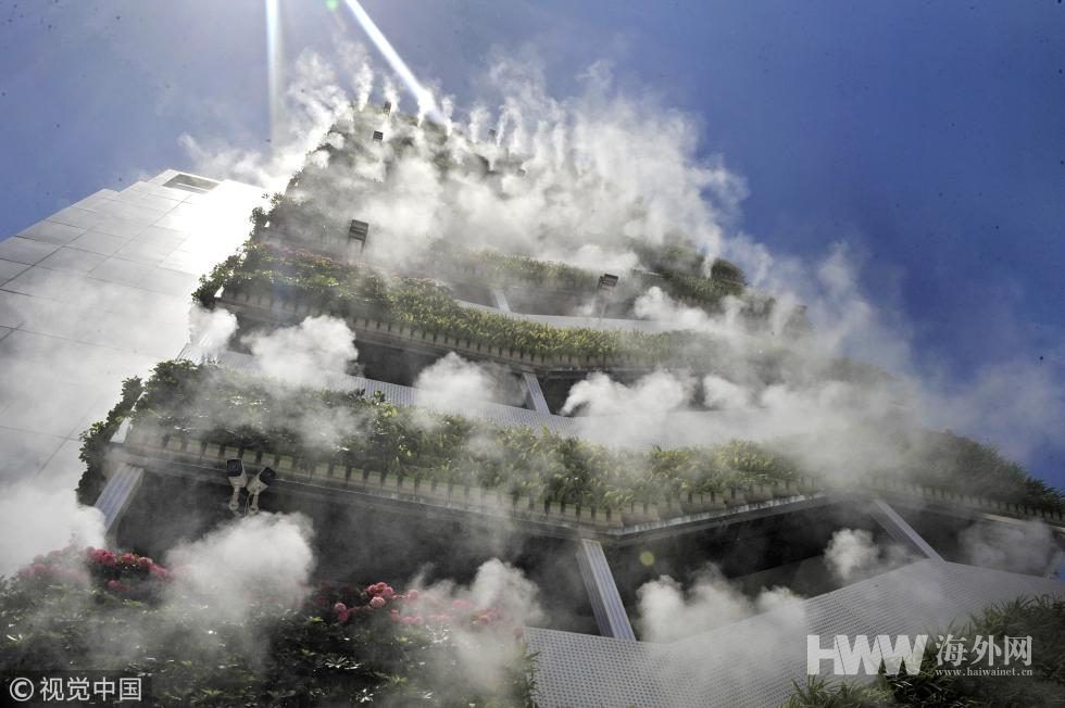2018年6月10日,西安,高楼外长满绿植,还萦绕着雾气。图片来源:CFP
