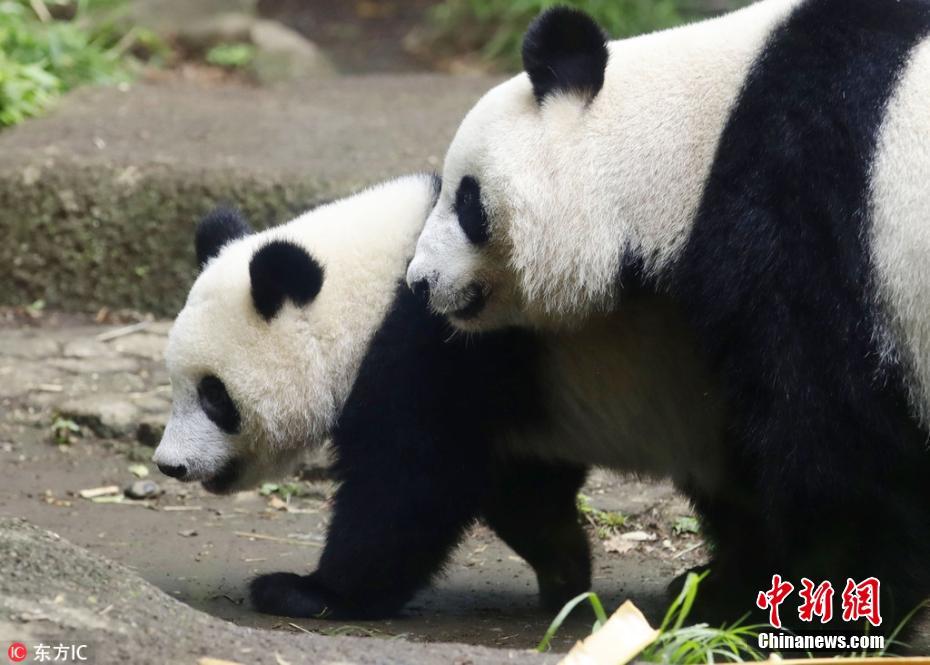 旅日大熊猫宝宝“香香”迎1岁生日 与妈妈遛弯动作同步