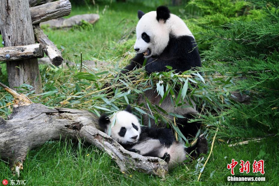 旅法大熊猫母子齐亮相 "圆梦"宝宝倒挂不慎摔倒糗大了