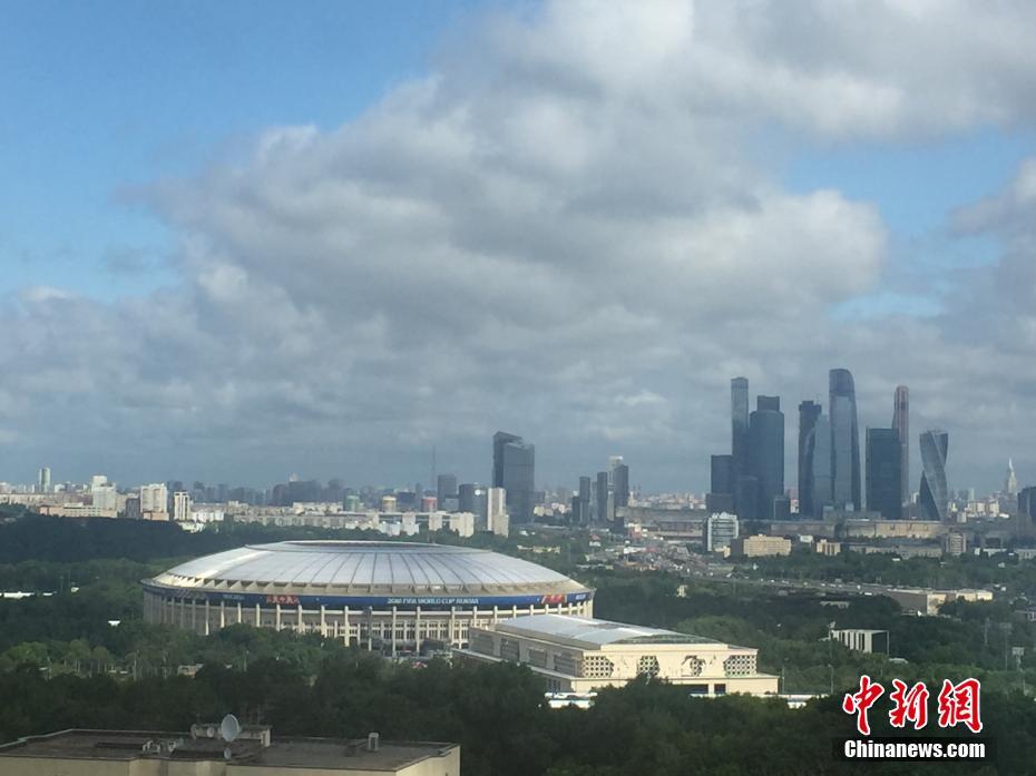 当地时间6月13日清晨,莫斯科卢日尼基体育场。2018年俄罗斯世界杯足球赛将在这里开幕。 中新社记者 毛建军 摄