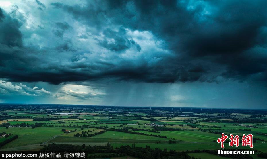大雨将至 法国旺代天空乌云密布景象似科幻大片