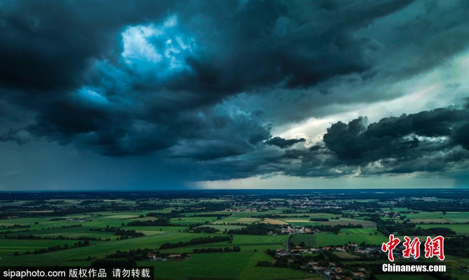 当地时间6月12日,法国旺代迎来暴雨天气,天空乌云密布,景象壮观似科幻大片。图片来源:Sipaphoto 版权作品 禁止转载