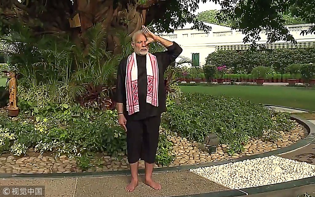 印度总理莫迪接受"健身挑战" 发布练瑜伽视频