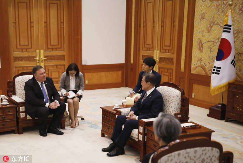 美国务卿访韩 向文在寅通报朝美会晤情况