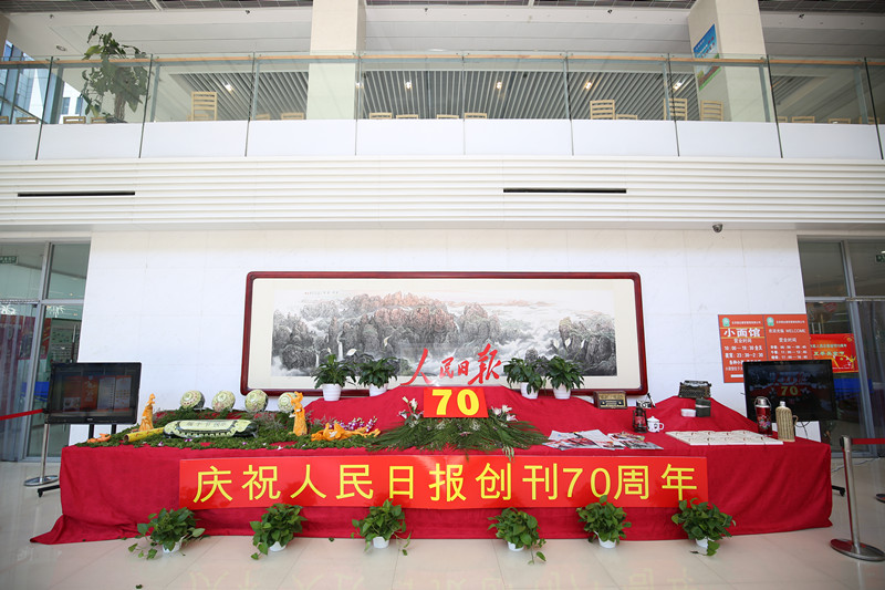 人民日报社院内处处充满创刊70周年喜气洋洋的热闹氛围。图:谢明 文字说明:孙晓璇