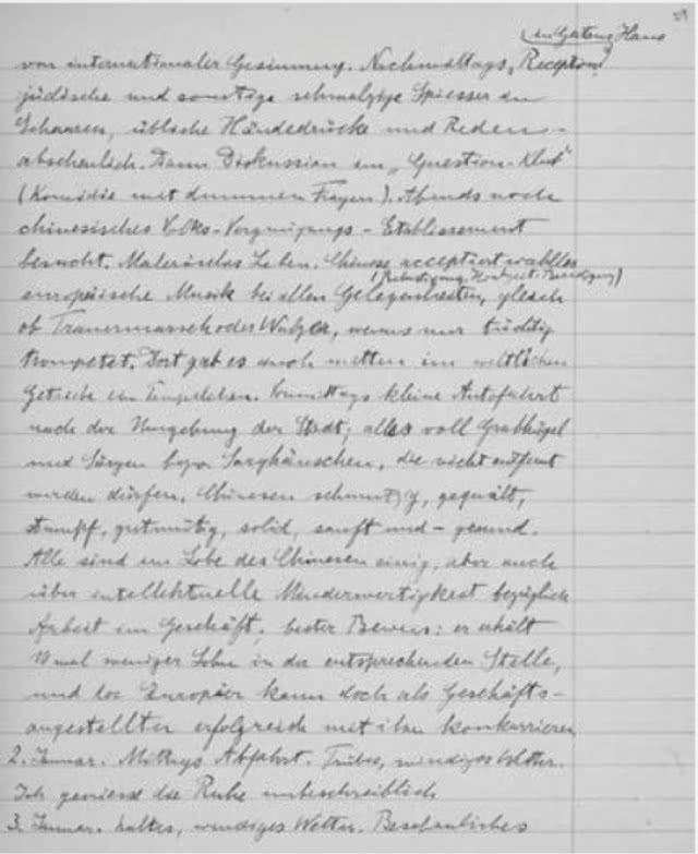然而,在他一本最新被曝光的私人日记中,他在这段旅行中对自己所见所闻的中国人是这样描述的:“勤劳、肮脏和迟钝”——甚至连中国人的小孩也是如此。