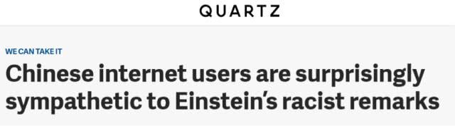 图为美国的石英网对于中国网民冷静看待爱因斯坦言论的报道