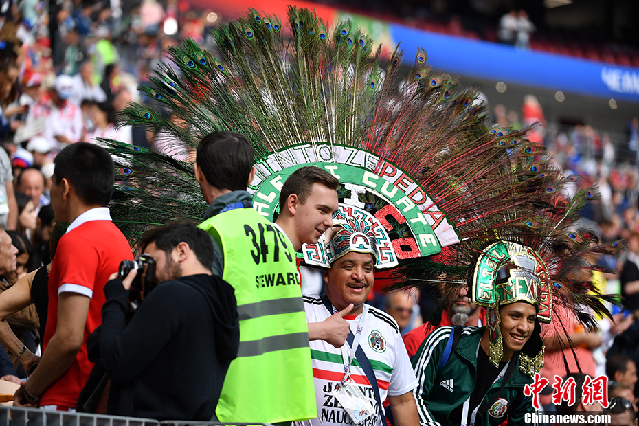 北京时间6月14日23点,俄罗斯世界杯揭幕战在莫斯科卢日尼基体育场打响,东道主俄罗斯对阵沙特阿拉伯。比赛现场,各国球迷俨然成为一道亮丽的风景线。 中新社记者 毛建军 摄