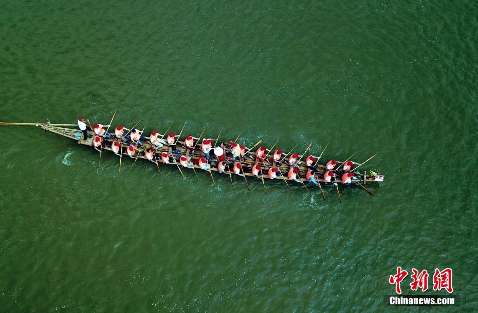 6月14日,龙舟队伍在江西南昌市新建区松湖镇锦江之上竞渡迎端午。当日是农历五月初一,南昌市新建区松湖镇举行划龙舟活动,该镇有农历五月初一至初五划龙舟迎端午的习俗,乡亲们都要通过划龙舟来祈求风调雨顺,国泰民安。陈斌 摄