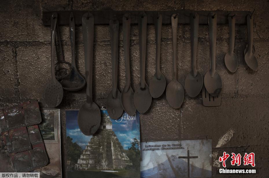 当地时间2018年6月8日-11日,危地马拉圣米格洛斯洛特斯村(San Miguel Los Lotes),曾经有住户的房屋如今被富埃戈火山喷发后的火山灰覆盖,生活戛然而止。火山于6月4日开始喷发,至今已有114人死亡。图为餐厅被富埃戈火山喷发的火山灰覆盖。