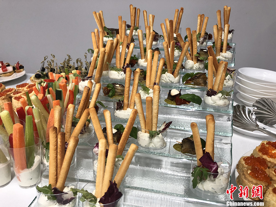 当地时间6月15日,记者探访俄罗斯喀山竞技体育场的媒体中心,特色的俄罗斯甜点吸引众多记者品尝。每到比赛日前,喀山竞技体育场的新闻中心都会提供免费的食物给前来采访俄罗斯世界杯的媒体记者。 中新社记者 田博川 摄