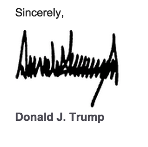 叙维尔认为,特朗普签名中使用了大量的直线条和棱角,且看上去千篇一律,这表明他在潜意识中正力图湮没每封信的特殊性;类似于印刷体的书写方式,表明他对自己充满信心,十分关注自身形象和影响力。