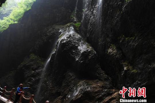 6月17日,端午小长假期间,甘肃宕昌县官鹅沟雨中瀑布美景引人入胜。官鹅沟国家森林公园自然景观和人文景观于一体,湖泊如珠、峡谷如线、瀑布如织,动植物分布多样,生态环境优美,自然景观奇特。