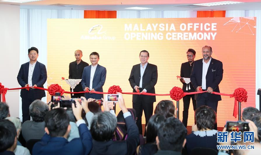 6月18日,在马来西亚吉隆坡,阿里巴巴集团董事局主席马云(前左二)和马来西亚财政部长林冠英(前右二)等为阿里巴巴集团马来西亚办公室剪彩。阿里巴巴集团18日宣布在马来西亚设立东南亚区域的首个办公室,以更好地推动集团本地化,同时深化和马来西亚的战略合作。 新华社记者朱炜摄