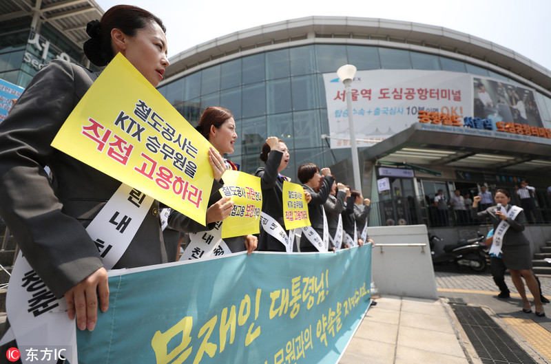 韩大批遭解雇铁路员工游行 向文在寅请愿