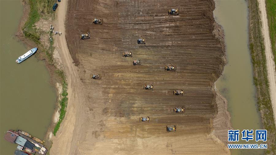 这是6月15日拍摄的沅江市南洞庭湖下塞湖矮围集中拆除专项整治行动施工现场(无人机拍摄)。新华社记者丁春雨摄